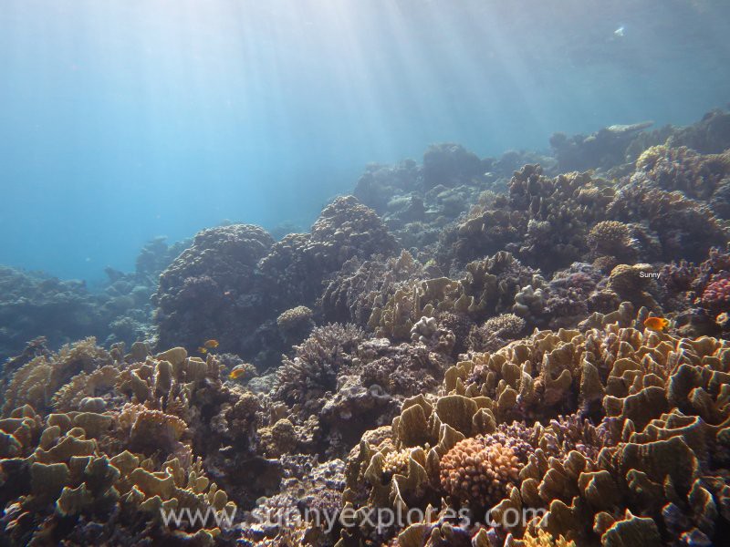 At the end of the ridge lies a canyon at around 30 meters depth. The entrance is an adventure: it’s an extremely slender crack. The canyon has a strange, twisting shape with only a few exit points. This makes the canyon potentially hazardous due to its depth, the narrowness of the entry and exit points and the limited exit possibilities. In my opnion it’s an amazing dive in the Little Canyon. You don’t need to dive the canyon to enjoy Ras Abu Helal. The density and variety of both soft and hard corals are amazing and really worth the dive.