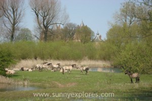 Later that century knight Dirc Loef van Horne began the construction of a castle on this strategic location at confluence of the Meuse and Waal rivers. Ever since, for more than 650 years, the castle watches over Munnikenland and the rivers. The rivers protected the castle against attacks. And it was a great place to raise tolls on passing ships since the Meuse and Waal were (and the Waal still is) important trade routes. Yet, often the water gave problems. The rivers flooded many times en put the land under water. This created a typical river-nature wich is the home for many species of birds and insects. The nature reserve is also inhabited by Rode Geuzen, aurochs-like cattle en Koninks, wild held horses. Due to their presence, the area is grazed in the most natural way possible.